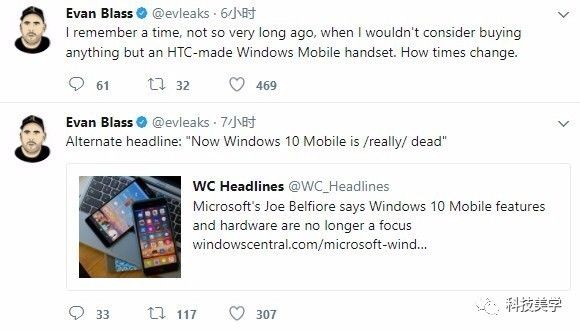 知名爆料达人@evleaks 也转发了该消息,并一句话点评:“现在Windows 10 Mobile是真的死了。”