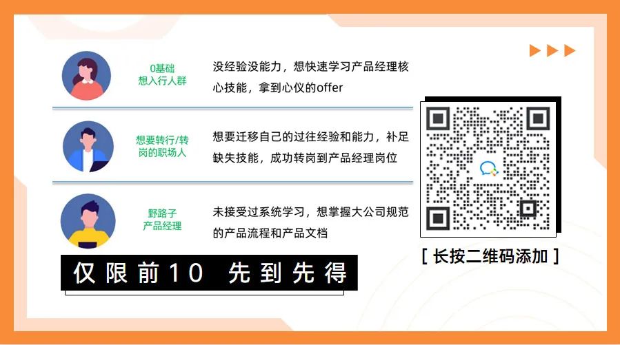如果你有更多对于产品经理职位上的困惑,可扫码加产品顾问老师获取「1对1免费咨询」,帮你理清思路,匹配更高效的解决路径~
