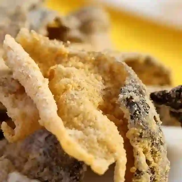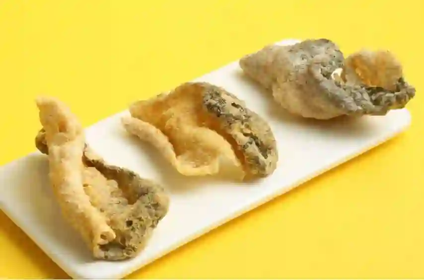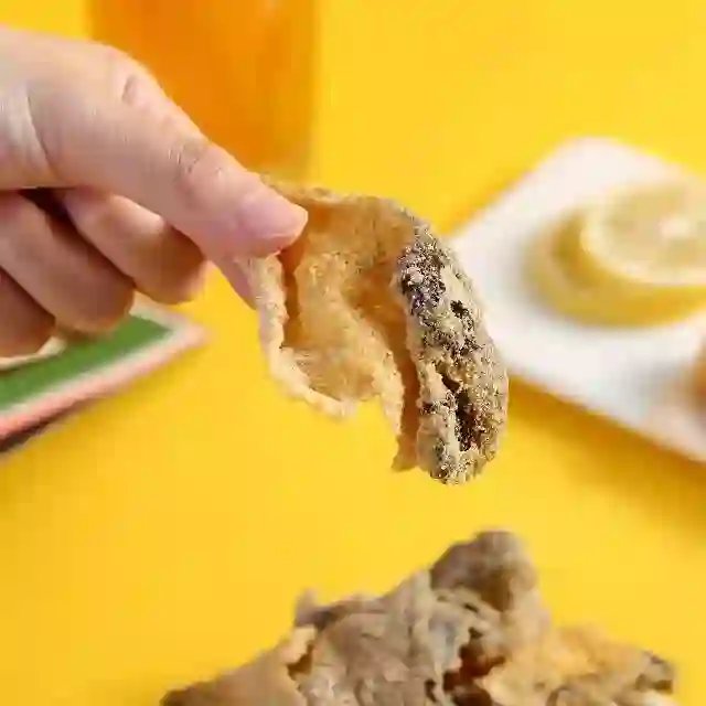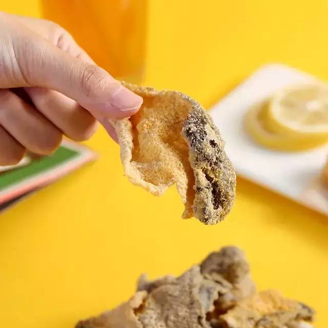 每次打开一包咸蛋黄鱼皮,闻到咸蛋黄的香味,就已经忍不住流口水了。炸好的鱼皮非常松脆,咬起来咔嚓作响,声音甚是好听。