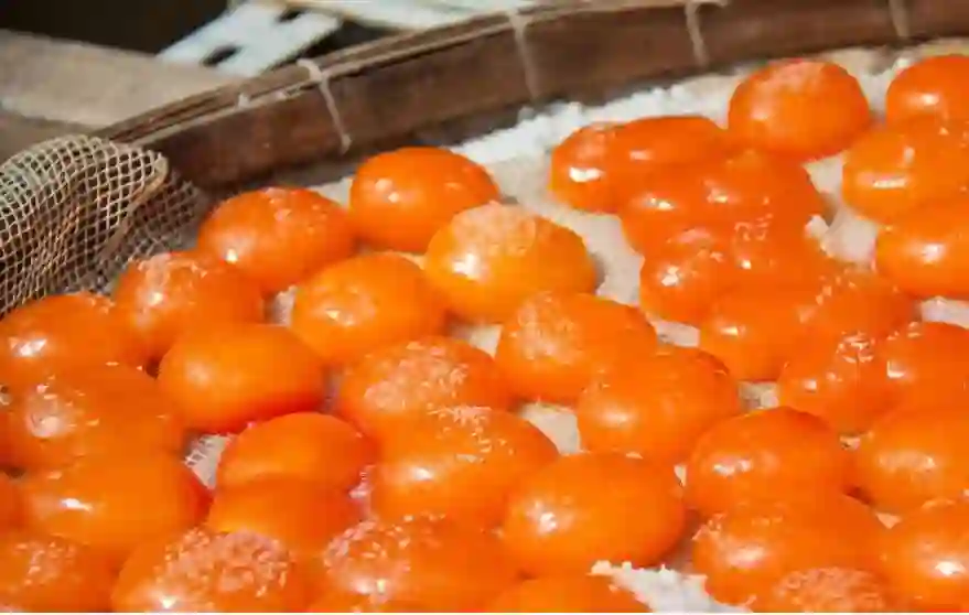 鱼皮挑好了,蛋黄也不能随便凑活不是!得是腌制22-26天的成熟咸鸭蛋,咸味适中,油多味美,才能配得上鱼皮的鲜美。