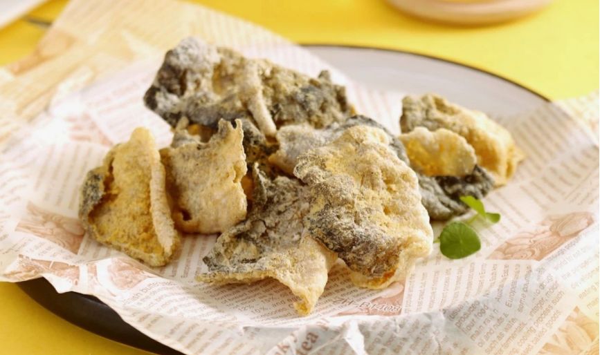 咸蛋黄鱼皮甚至可以拯救单调的粥饭,在家煮饭、煮面、熬粥时,不妨拿点鱼皮做小菜,蘸着汤汁,介乎脆与软之间的神奇口感,让人忍不住一口又一口。