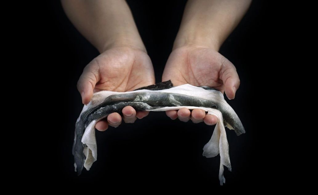 吃鱼皮,最怕的就是有腥味了,但制作这款鱼皮的是有20年鱼类加工经验的老师傅,去腥还是很有一套。除了使用新鲜的鱼皮,另一个秘密武器就是独家的鱼皮腌制配方了。