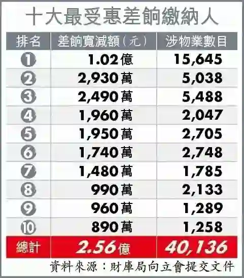 这个文件原本是关于减免四级差饷的相关内容,但是文件里面却附上了“全港首10位享有最多差饷宽减额的差饷缴纳人资料”。