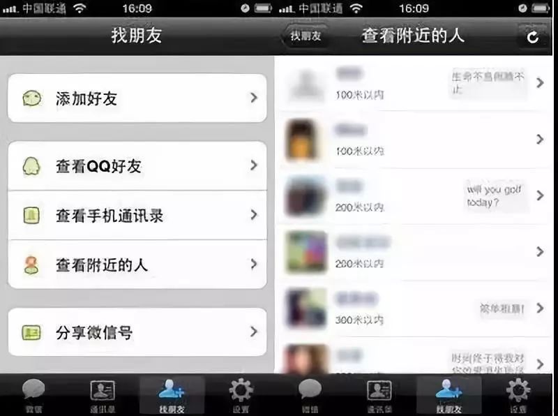 陌生人交友功能竟能产生如此四两拨千斤的效果,这样的情景也令人们开始对其「虎视眈眈」,在微信推出「查看附近的人」功能后的八个月左右,陌陌出现了。