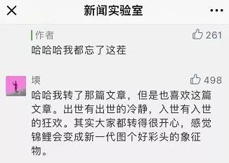“新闻实验室”在《拜锦鲤教》里说: