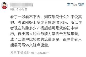 所以难免会有人暗搓搓地说:“如果是真的,那我觉得是一个有能力让自己过得更好的人,凭着小聪明和小运气得过且过”“杨超越可是凭的初中学历,低于路人的业务能力拿的千万年薪”……