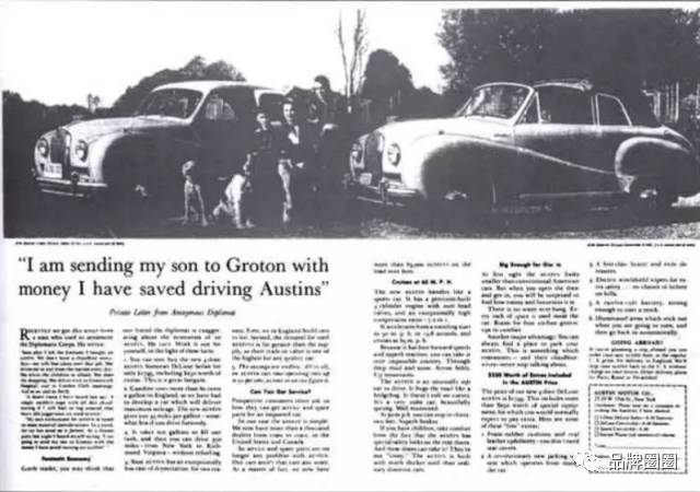 “我用驾驶奥斯汀轿车省下的钱,送儿子到格罗顿学校念书”——这是该广告的标题。(注:格罗顿学校是当时全美排名前10的高中)