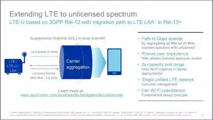 随着2017年初,高通骁龙835移动平台集成骁龙X16 LTE调制解调器,数以千万计的移动终端从此具备了对免许可频谱资源的兼容和支持能力。