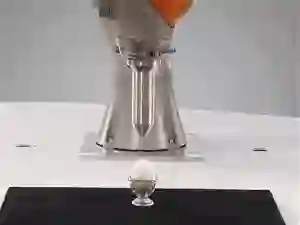 以50mm的速度抵近生鸡蛋,鸡蛋毫发无损