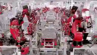 先来看看库卡机器人在特斯拉超级工厂里的表现: