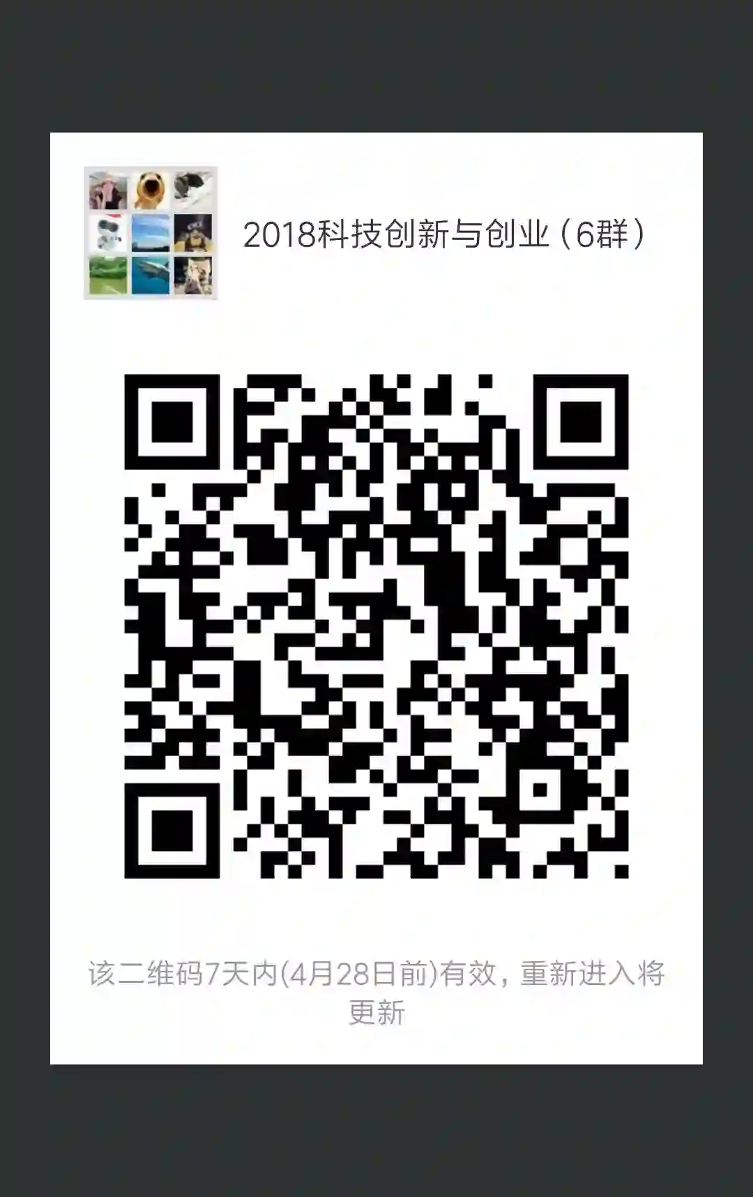 温馨提示:扫描二维码加入2018“科技创新与创业”交流群 (已加入1群至5群的同学老师不用扫码,讲座消息会在所有微信群一起通知)