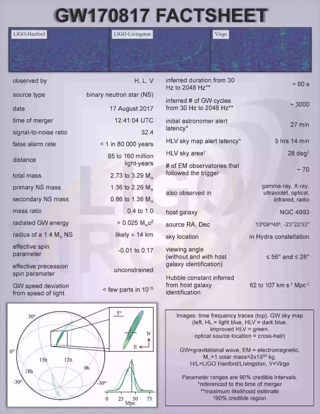 LIGO公布的2017年8月17日双中子星合并的基本科学数据。