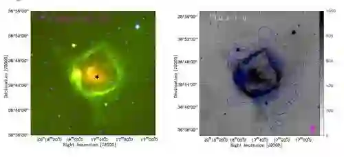 部分电离氢区(HII Region)是由大质量恒星产生的UV光子电离周围介质而产生的。恒星在分子云中形成,电离氢区也在分子云中形成和演化。所有真实的天体都是三维结构,球状电离氢区周围的介质也将展现三维结构。通过对电离氢区 SH2-104 周围介质的结构和动力学分析,发现该电离氢区周围的介质是环状的二维结构,并不是球壳状的三维结构。有趣的是,为何包裹三维电离氢区周围的分子气体是二维环状结构,以及环状结构的中心是空的而没有相应的分子气体辐射?通过研究小组系列文章的研究,揭示银河系内部分星际介质就是二维片状的,只是这类片状介质存在一定厚度。当位于此类介质中膨胀电离氢区的尺度大于周围片状介质的厚度时,展现了我们所看到的 SH2-104 周围二维环状结构。