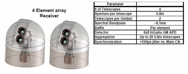 NASA于2003年开始执行火星激光通信验证(MARS Laser CommunicationDemonstration,MLCD)项目,目的是提供深空光学链路的早期经验。该项目由NASA/哥达德航天飞行中心(GSFC)管理,其星上子系统由麻省理工学院(MIT)林肯实验室(LL)研制,而地面子系统则由JPL和MIT-LL共同研制。星上终端计划在火星通信轨道器(MTO)上进行飞行试验,该任务原定于2009年10月发射。MLCD项目于2004年10月成功完成了系统要求评审,又于2005年3-5月完成了星上终端与地面终端的初步设计评审。后来由于NASA内部的计划变更,中止了MLCD项目。但是在MLCD项目进行期间,深空光学通信要求的定义和设计是非常先进的,该项目对于来自空间的波束稳定化和在地面上的有效光子计算与日间操作等各项关键技术都进行了开发。