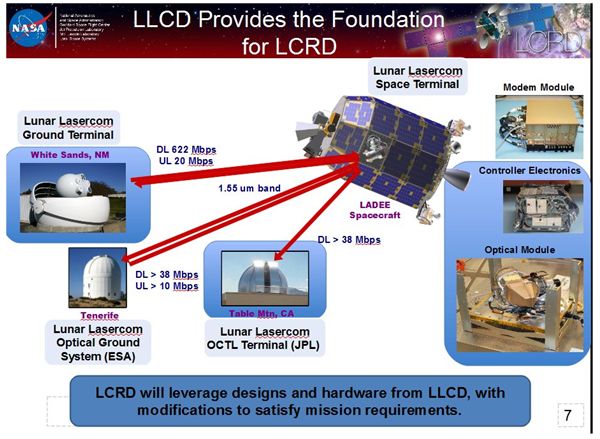 LLCD试验有三个地面接收系统,分别是MIT研制的LLGT(位于新墨西哥White Sands),JPL设计的OCTL(位于加州),ESA的LLOGS(位于西班牙Tenerife岛)。