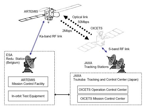 2005年12月,ARTEMIS和OICETS进行了星间激光通信链路试验。本次试验的不仅成功进行了激光通信试验,而且成功完成了JAXA和ESA之间双向通信。2006年3月,LUCE终端与日本国家信息通信技术研究所地面光学站成功进行了双向光学通信实验,同年6月,LUCE终端与德宇航移动光学地面站(OGS)之间实现了光通信实验,在国际上首次实现低轨卫星与光学地面站的激光通信试验。本次试验计划的成功进一步推动了星间通信以及深空探测中采用光通信技术的可能。