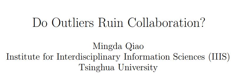 不久之前,ICML 2018 的接收论文列表放出,本文为你编译了清华特奖得主、交叉信息院 2014 级本科生乔明达一人署名的论文《Do Outliers Ruin Collaboration?》。