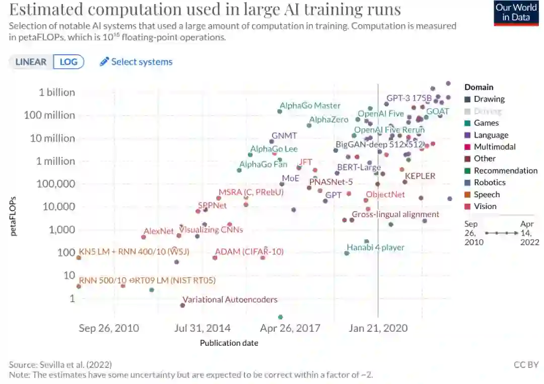 随着参数的增加,ML 模型的计算成本也在飙升。谷歌曾总结过,自 2010 年以来,ML 模型的训练计算量惊人地增长了 100 亿,平均每 6 个月就翻一番。如今,PaLM 站上了 C 位。