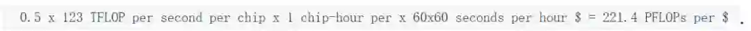 可以通过租用 TPU 实例来估计每个 flops 的成本(假设利用率为 57.8%)。