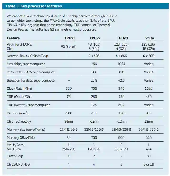 我们知道,TPUv3 芯片为 bfloat16 提供大约每秒 123 TFLOP(TFLOPS)的算力。当然,这只是表格里显示的峰值性能。