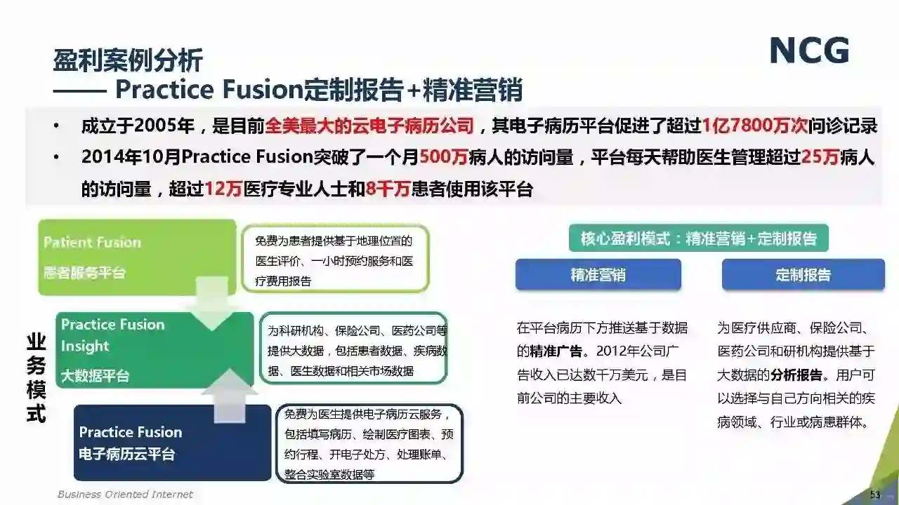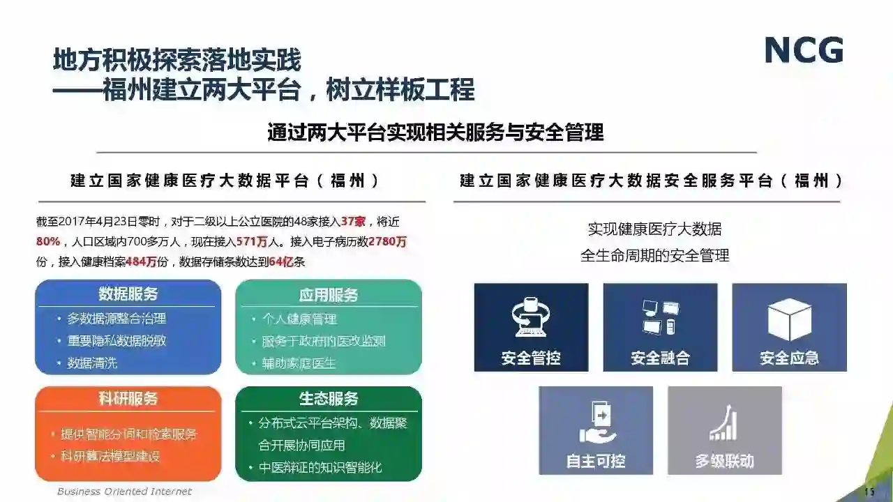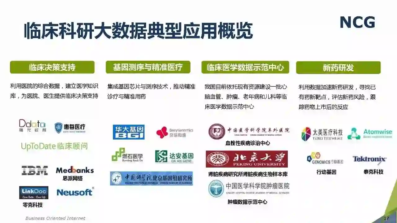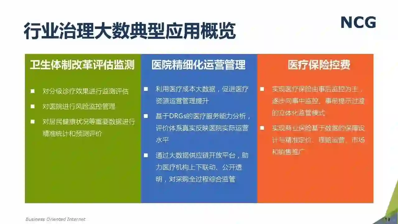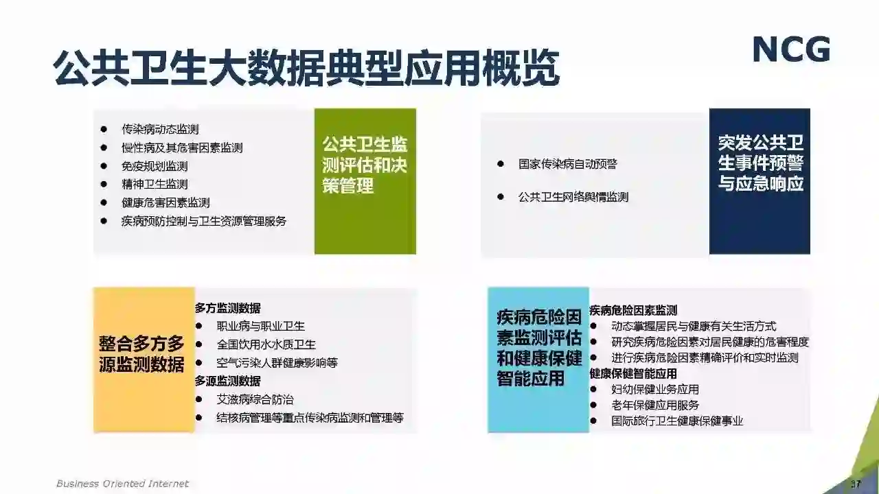 随着“健康中国2030”的不断推进,健康医疗大数据正成为国家重要的基础性战略资源。在国家卫计委牵头下,国有资本主导的三大健康医疗大数据集团正式成立,“1+7+X”的健康医疗大数据规划正在逐步成型。在此背景下,健康医疗大数据迎来快速发展,NCG在此基础上形成了对健康医疗大数据产业分析展望的行业报告。
