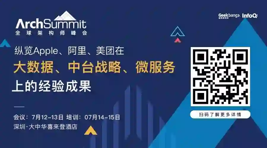 国内外 100+ 有血有肉的架构升级填坑之路,包括 Apple Siri 大数据处理、支付宝智能监控、美团算法架构、腾讯 Serverless、淘宝反应式架构、阿里中台战略、字节跳动容器化实践、网易用户增长经验谈等。7 月 12 日深圳 ArchSummit 全球架构师,一网打尽所有干货。扫码或点击阅读原文了解详细信息。