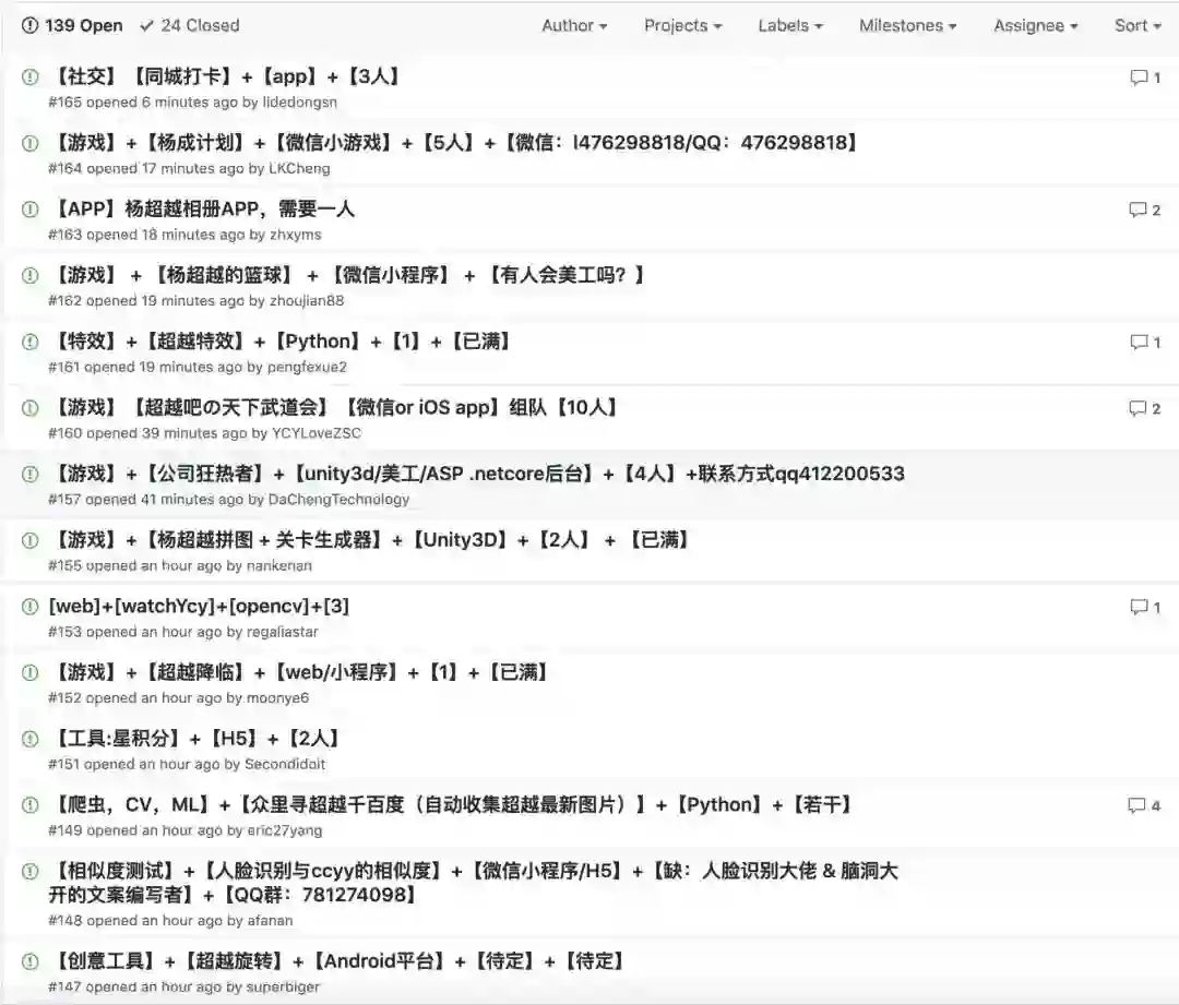 今年 3 月份微博热搜火了一个话题,# 杨超越杯编程大赛 #。这是少有的几次饭圈跟技术圈发生的直接关系,对此事件的评价褒贬不一,但我们还是乐于看到两个不同圈子之间的了解与融合。这场由百度杨超越贴吧主办,杨超越知乎研究所、杨超越码农后援会协办的编程大赛,短短几天已经吸引了超过 600 多名程序员参赛。GitHub 上的 Star 数也已经超过 2100,issue 数量超过 300 多个。