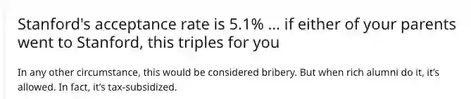 如果你的父母念过斯坦福,那么你被录取的概率就是其他人的三倍!哈佛的情况也不例外。