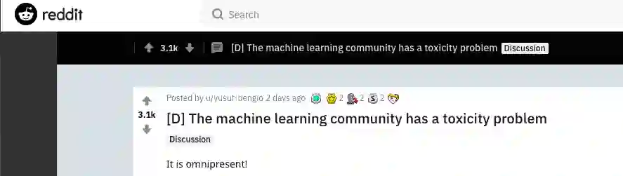 Reddit社区一位作者却站出来说:「The machine learning community has a toxicity problem.」