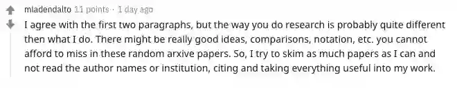 也有人反驳这种偷懒的行为。「我就能不看作者,快速读完一堆论文」。好吧,一目十行君真的有。
