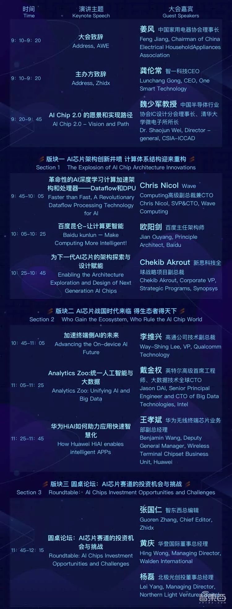同时,作为今年大会的一大亮点,北极光创投董事总经理杨磊、华登国际董事总经理黄庆将站在顶级投资人的角度,在上午场的投资人高峰对话环节,与智东西联合创始人/总编辑张国仁进行对话,揭秘芯片行业投资的内在逻辑和行业未来机遇。