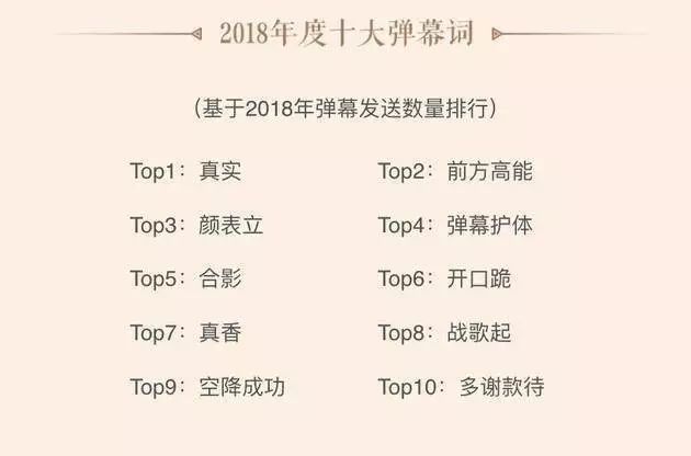哔哩哔哩(B 站)昨日联合中国社会科学院共同发布了 2018 年度十大弹幕热词。依据 2018 年弹幕发送数量进行排序,「真实」称年度弹幕之首,「前方高等」、「颜表立」跻身前三。