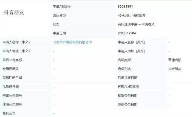 昨日消息,「今日头条」母公司字节跳动于 12 月 4 日提交了一份名为「抖音朋友」的商标申请。该商标类型为社交、法律服务类,目前处于「申请收文」状态。