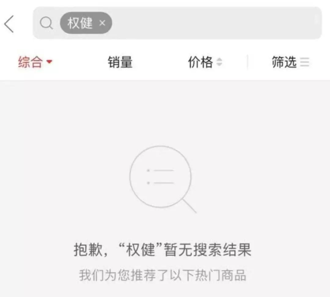 「百亿保健帝国权健」持续遭遇质疑,部分电商平台也开始下架权健按摩鞋垫、等离子磁卫生巾等全线商品。京东方面昨日表示,已将平台在售的所有「权健」相关商品下架。天猫、苏宁、唯品会平台上也无法找到权健商品。唯品会方面表示,从来没卖过权健的商品。苏宁页面上显示:「根据相关法律法规和政策,无法显示相关的商品。」拼多多表示,已关注到权健事件,先行屏蔽相关商品搜索及露出。
