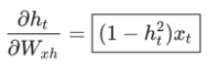 W_{xh}用于所有 x_t→h_t前向链接,因此我们必须反向传播回每个连接。