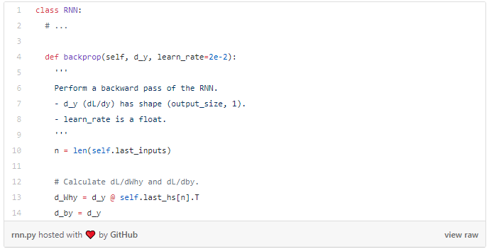 现在我们有了损失,我们将使用梯度下降训练我们的RNN,以尽量减少损失。 这意味着我们要开始计算梯度了!