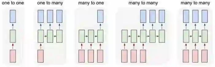 输入为红色,RNN本身为绿色,输出为蓝色。
