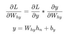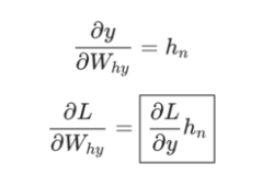 我们将从最后一个隐藏状态开始实现BPTT,所以当我们想要计算∂y/∂h_t时,我们已经有了∂y/∂h_{t+1}! 例外的是最后一个隐藏状态,h_n: