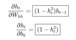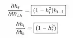 最后,我们需要W_{xh},W_{hh}和b_h的梯度,这些梯度在RNN反向传播期间的每一步都使用。 我们有: