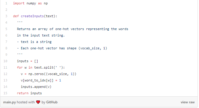 稍后我们将使用 createInputs( )创建矢量输入以传入我们的RNN。
