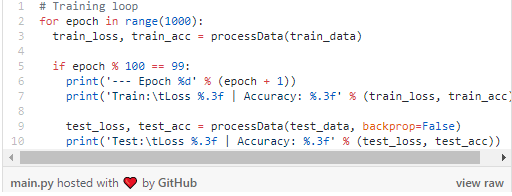 tips:我们除以1000以减少权重的初始方差。 这不是初始化权重的最佳方法,但它很简单,适用于这篇文章。