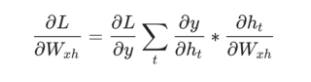 因为改变W_{xh}会影响每个h_t,它们都会影响y并最终影响L.为了完全计算W_{xh}的梯度,我们需要反向传播所有时间步长,这称为随时间反向传播(BPTT):
