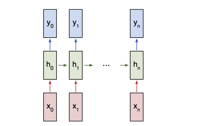 让我们考虑一个“多对多”的RNN,其输入x_0,x_1,... x_n想要产生输出y_0,y_1,... y_n。 这些x_i和y_i是矢量并且可以具有任意尺寸。