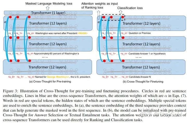 本文提出了Cross-Thought,如上图(c)所示。它将输入文本切分成许多短句,使得恢复某个短句中被mask掉token的信息较难出现在同一个短句中,而不得不依赖于其上下文其它短句的信息: