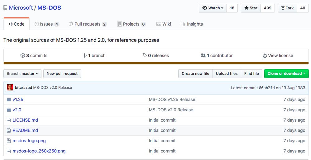 可能是「计算机历史博物馆」对开发者不友好的原因,就在七天前,微软官方把 MS-DOS MS-DOS v1.25 & v2.0 的源代码在 GitHub 上公开,更方便获取了。