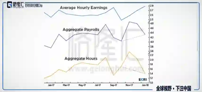 除了失业率,美国平均时薪的回升也一度被认为是美国经济实现复苏的体现。然而,关于时薪回升代表经济向好的观点也是值得商榷的。平均时薪的计算方法为总工资除以总工时,若总工资增长率高于总工时增长率,由此带动的平均时薪增长率可以说明经济向好。但如果平均时薪回升只是因为总工资的下滑要慢于总工时的下滑,那么即使平均时薪回升,也只是一个数字概念,并不能正确反映当下经济环境。根据ECRI(经济周期研究所)研究,当前美国总工资及总工时增长率都出现下滑,且总工资下滑又慢于总工时下滑,仅仅是分子分母的动态变化使美国平均时薪出现数字上的回升。
