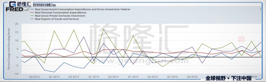 图5 美国GDP增速及各分项增长情况(%)
