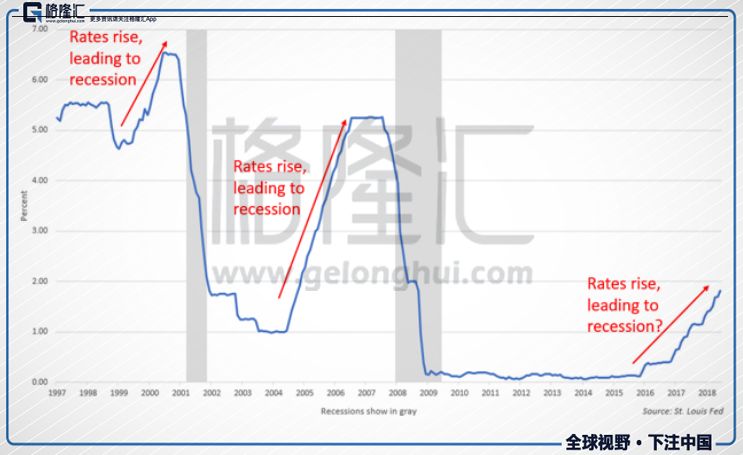 通过对美国联邦基金利率的研究发现,美国前两次经济衰退和泡沫刺破均是发生在联邦基金利率上行之后。“成也利率,败也利率”,作为决定资产定价的关键因素,利率的变化将再一次影响到美国经济和股市的命运。