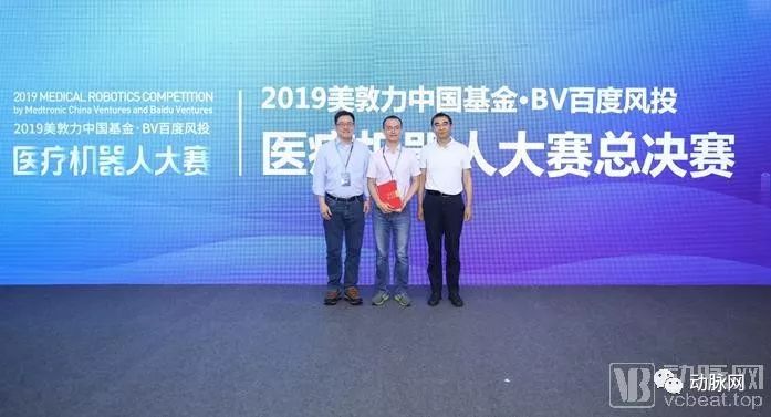 左:美敦力全球高级副总裁兼大中华区总裁顾宇韶 中:获奖企业艾瑞迈迪 右:BV百度风投董事朱峰