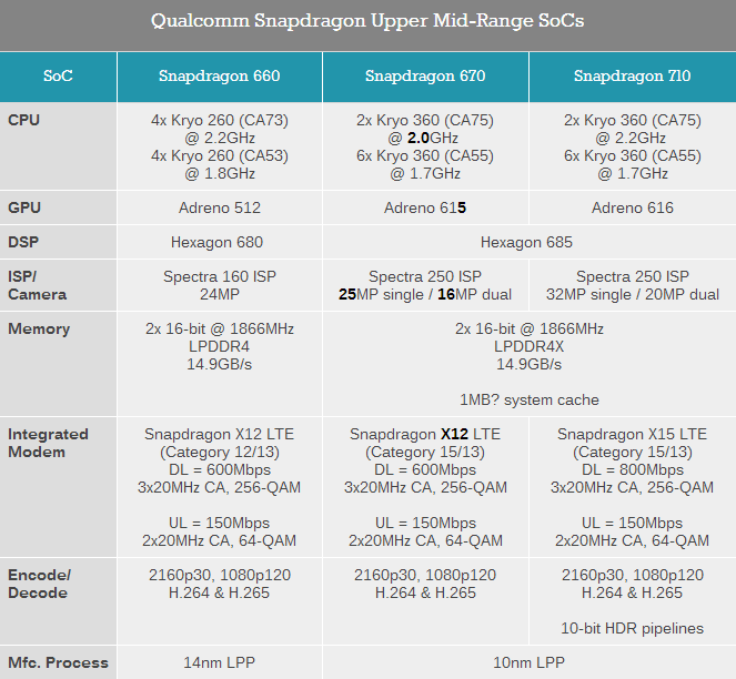 令人惊讶的是,此前外界曾一致认为众望所归的“神U”骁龙670由于重点强化了AI性能,高通决定开辟全新的骁龙7系平台,骁龙670实际上已经更名为骁龙710作为7系的第一款产品披挂上阵。此番骁龙670回归,着实让大伙儿有些意外。
